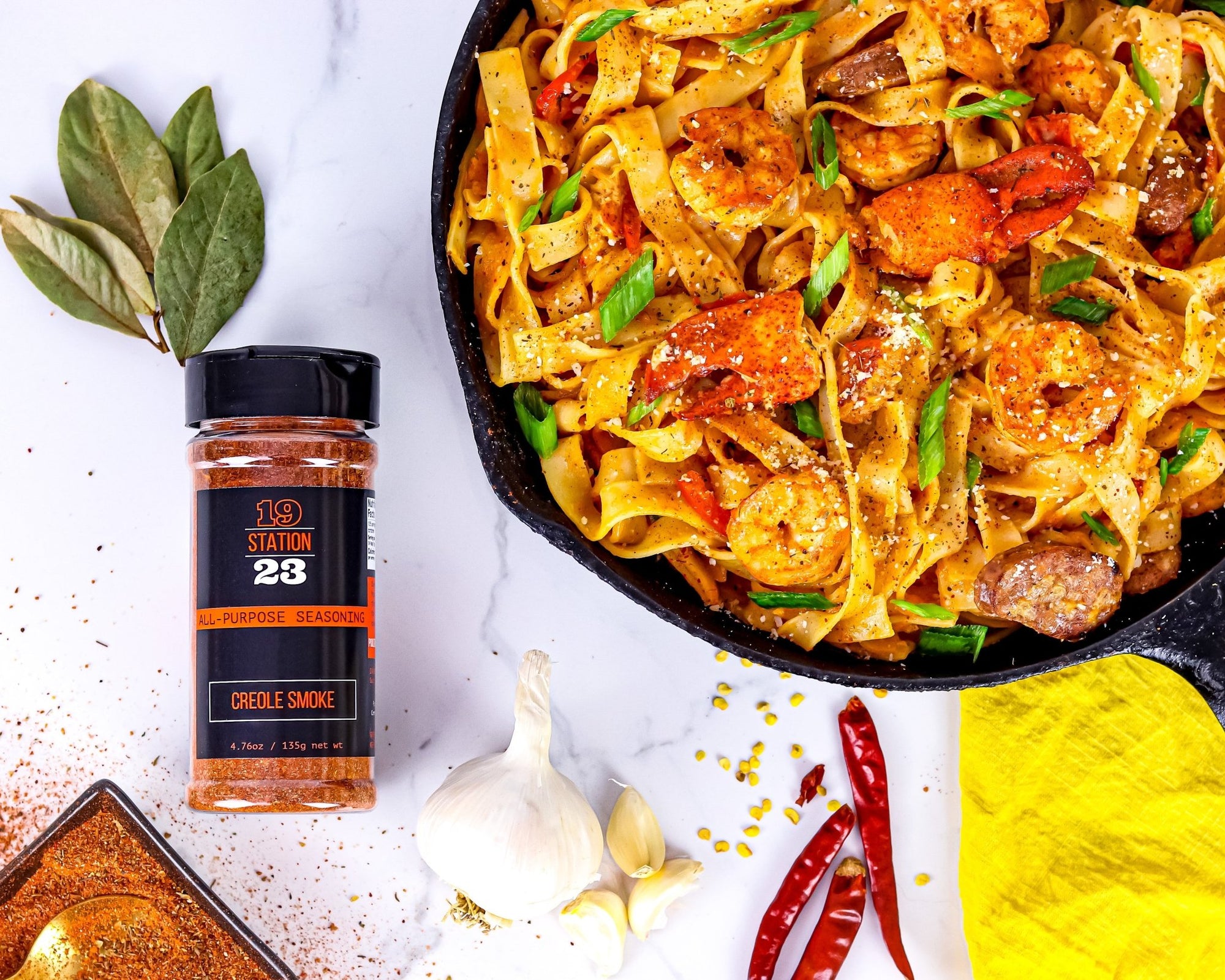 Experience the colorful flavors of New Orleans with Station 1923 Creole Smoke All-Purpose Seasoning. This savory blend features a balanced nod to the trinity (onion, celery, and bell pepper), plus bay leaf, and a hint of cayenne.